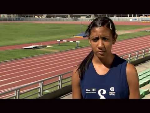 Alice Corrêa, que pratica atletismo na prova dos 100 metros rasos paralímpicos e tem deficiência visual congênita.