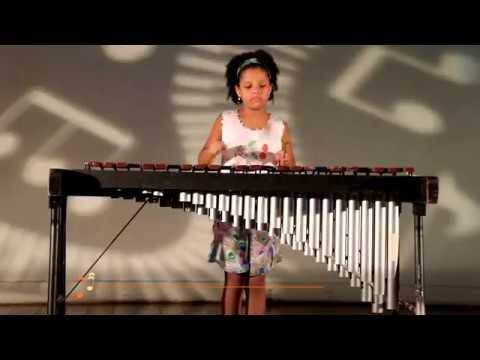 As teclas do vibrafone são feitas de metal e a percussionista Lídia utiliza baquetas para tirar o som delas. Confira a apresentação de Lídia e seu vibrafone.