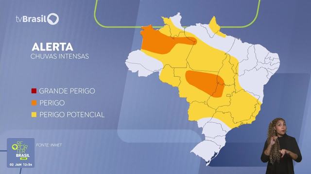 O Instituto Nacional de Meteorologia (Inmet) emitiu alerta para acumulados de até 100 mm de chuva, com ventos entre 60 e 100 km/h em várias regiões. Há risco de cortes de energia, quedas de galhos e alagamentos.