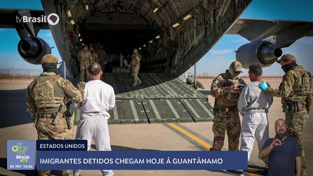 O primeiro avião com imigrantes deportados dos Estados Unidos chegou na manhã desta quarta-feira (5/2) à base militar de Guantánamo, em Cuba. Fotografias tiradas na entrada da aeronave mostram os imigrantes algemados enquanto eram preparados por soldados norte-americanos para embarcar. Segundo a porta-voz do governo americano, o voo transportava de nove a dez imigrantes e todos eram estrangeiros criminosos e altamente perigosos.