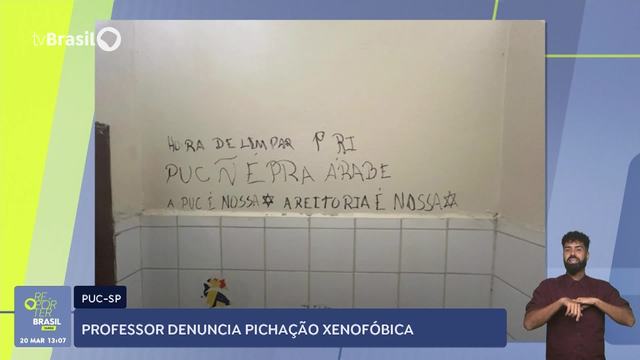 Um professor da PUC de São Paulo denunciou em suas redes sociais uma pichação anônima de caráter xenofóbico em um dos banheiros da instituição. Acompanhada de desenhos da estrela de David, que é um símbolo judaico, presente na bandeira de Israel, a pichação dizia “Hora de limpar R.I. A PUC não é para árabe. A PUC é nossa, a reitoria é nossa”. R.I. é uma referência ao curso de Relações Internacionais, que tem entre os seus docentes na PUC de São Paulo o professor Reginaldo Nasser, que é de ascendência árabe. Em nota, a reitoria da PUC disse que repudia com veemência toda manifestação discriminatória e racista, e que o ato será apurado internamente para que as medidas cabíveis sejam tomadas.