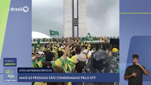 Mais 63 pessoas foram condenadas pelo Supremo Tribunal Federal (STF) por participação nos atos antidemocráticos do dia 8 de janeiro. Nove réus pegaram penas superiores a 14 anos de prisão. Eles foram considerados culpados por crimes graves como golpe de estado e dano qualificado. Já outros 54 foram julgados por associação criminosa, incitação ao crime e tiveram a pena substituída por serviço comunitário, além de participação em cursos sobre democracia. Todos deverão ainda pagar multa solidária, tiveram os passaportes suspensos e eventual registro ou posse de arma revogado. Até dezembro do ano passado 371 pessoas já haviam sido condenadas pelo STF por participação nos ataques do dia 8 de janeiro.