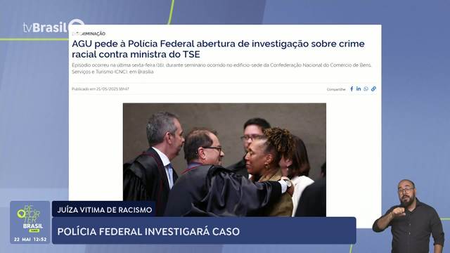 A Advocacia-Geral da União (AGU) notificou a Polícia Federal para investigar o caso de racismo contra a ministra Vera Lúcia Santana, do Tribunal Superior Eleitoral (TSE). Esta semana, ela foi convidada para um seminário sobre ética e enfrentamento de discriminação, mas acabou barrada na portaria do prédio onde aconteceria o evento. A ministra foi impedida de entrar, mesmo tendo dito que seria uma das palestrantes e mesmo depois de apresentar a carteira de ministra do TSE. Ela só pôde subir para o auditório onde era guardada depois que organizadores do evento desceram à portaria para pôr fim à violência praticada contra Vera Lúcia.