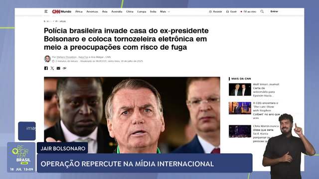 A operação da Polícia Federal contra o ex-presidente Jair Bolsonaro ganhou repercussão na imprensa internacional. A rede americana CNN destacou que Bolsonaro será obrigado a usar tornozeleira eletrônica e lembrou que ele é réu em um processo por tentativa de golpe para reverter o resultado das eleições de 2022.