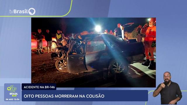 Um acidente envolvendo dois carros e uma moto deixou oito pessoas mortas na BR 146, na noite desse domingo (3/8), em Guaxupé, Minas Gerais. Segundo o Corpo de Bombeiros, um veículo que seguia em direção a Guaxupé bateu de frente com uma moto que vinha no sentido oposto. Com o impacto, o carro perdeu o controle e atingiu um terceiro veículo. Morreram quatro pessoas do primeiro veículo, dois ocupantes da moto e mais duas pessoas do último carro atingido. Todas as vítimas são da cidade de Muzambinho.