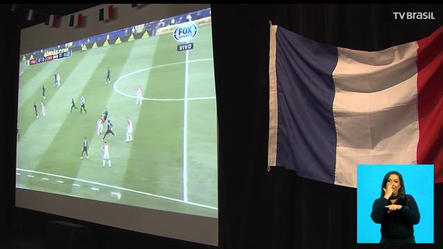Os franceses comemoram o bicampeonato da Copa do Mundo. E teve torcida unida também no Rio de Janeiro. Numa sala estilo cinema, franceses e brasileiros torceram juntos.