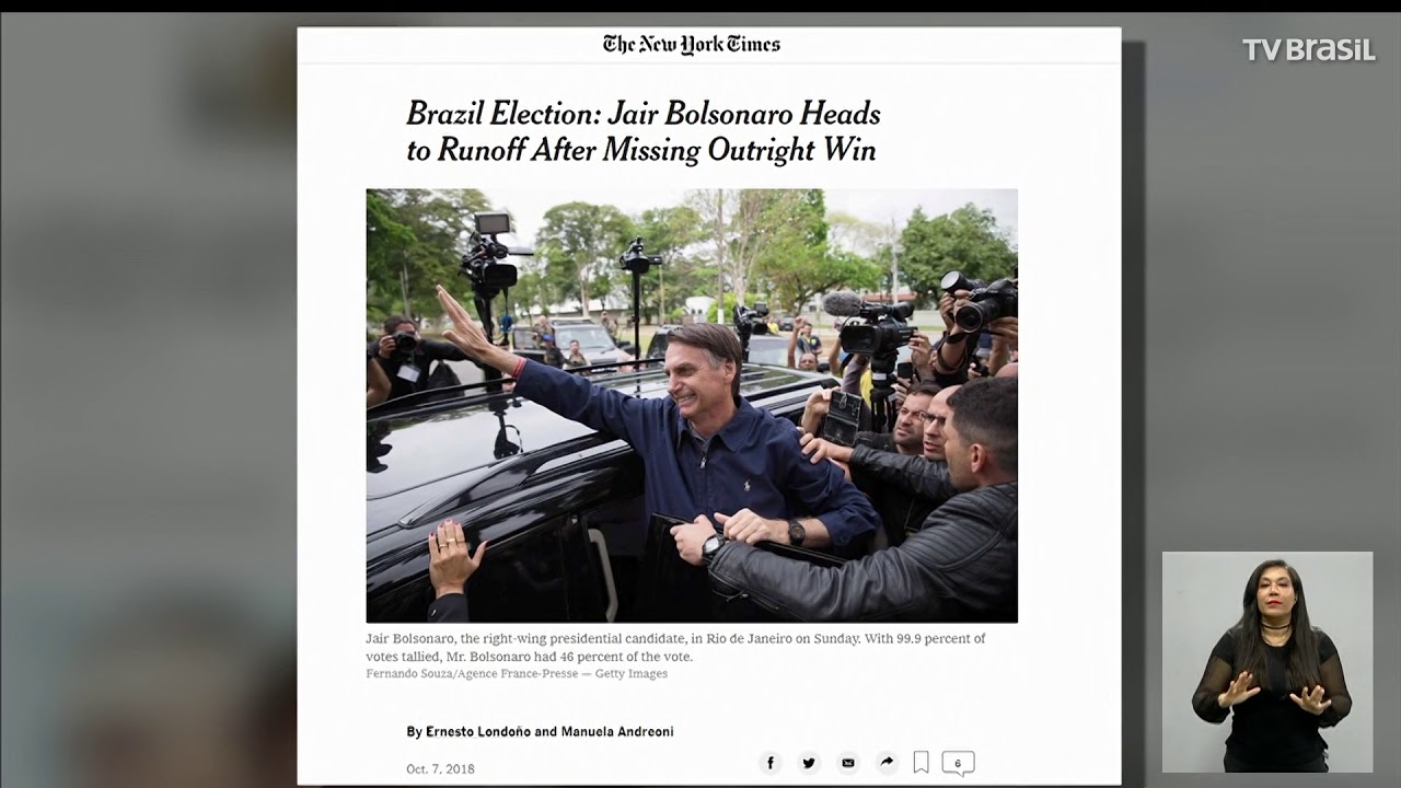 As eleições no Brasil foram notícia nos jornais internacionais. O comentarista da TV Brasil, Moisés Rabinovici destaca que boa parte do mundo vê a eleição como o fenômeno batizado de democracia iliberal, em vigor em vários países europeus, latino-americanos e nos Estados Unidos. "Bolsonaro é o Trump tropical", simplifica a BBC. "Bolsonaro é um misto de Trump com Duterte", o presidnete filipino a favor da execução de traficantes, diz o USA Today.