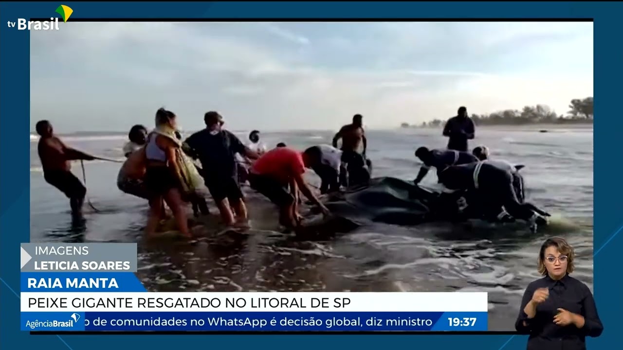 Uma espécie de raia gigante, do tipo manta, foi resgatada depois de ficar encalhada em ilha comprida, uma praia do litoral sul paulista. As imagens do resgate foram postadas nas redes sociais.