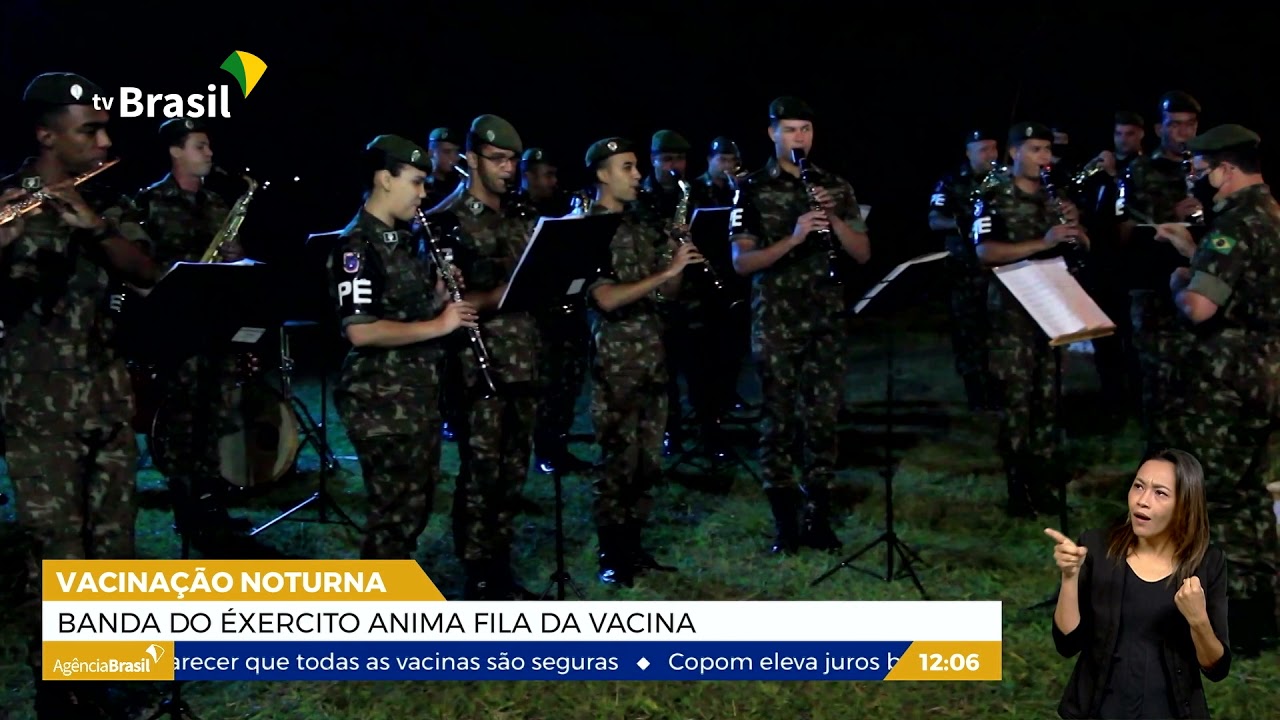 Imagina a cena: você está na fila para receber a vacina contra a covid-19 e, de repente, passa uma banda marcial tocando sucessos da música brasileira. É o que está acontecendo toda noite no posto de vacinação drive-thru do Exército. Veja nas imagens que o nosso telespectador enviou.