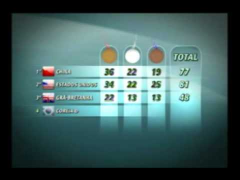 No Quadro de Medalhas das Olimpíadas de Londres, a China continua na liderança com 36 ouros e 77 medalhas, os EUA em 2º com 34 ouros e 81 no total. O Brasil caiu para a 25ª posição, com apenas 2 ouros e 10 medalhas no total.