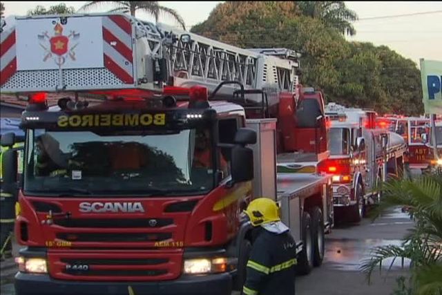 O fogo começou no início da tarde em um depósito de móveis e atingiu outros três galpões.