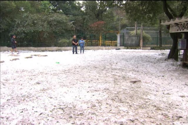 Nesta segunda-feira, moradores da cidade ainda se divertiram com o gelo que se acumulou nas ruas.